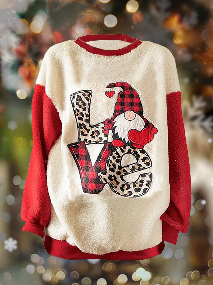 Christmas Print Knitted Casual Loose Round Neck Sweatershirts