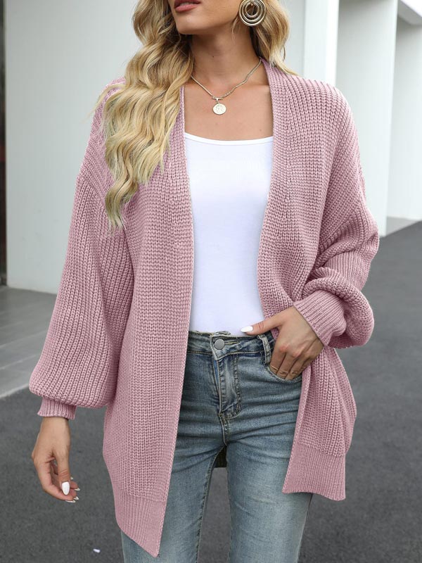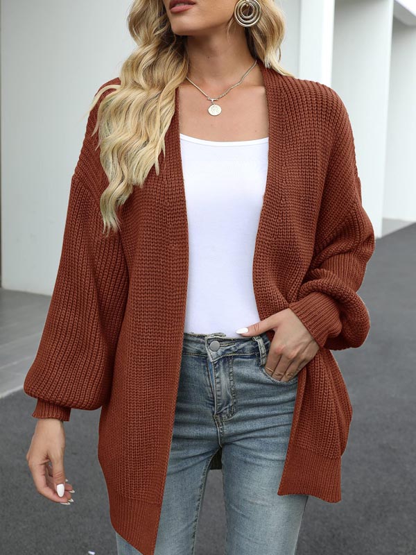 Lantern Sleeve Thick Knitted Sweater Cardigan