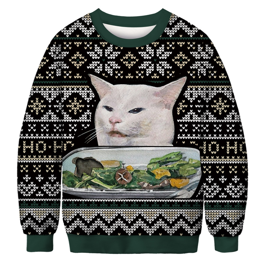 Unisex 3D Animal Cute Cat Print Christmas Sweatshirt
