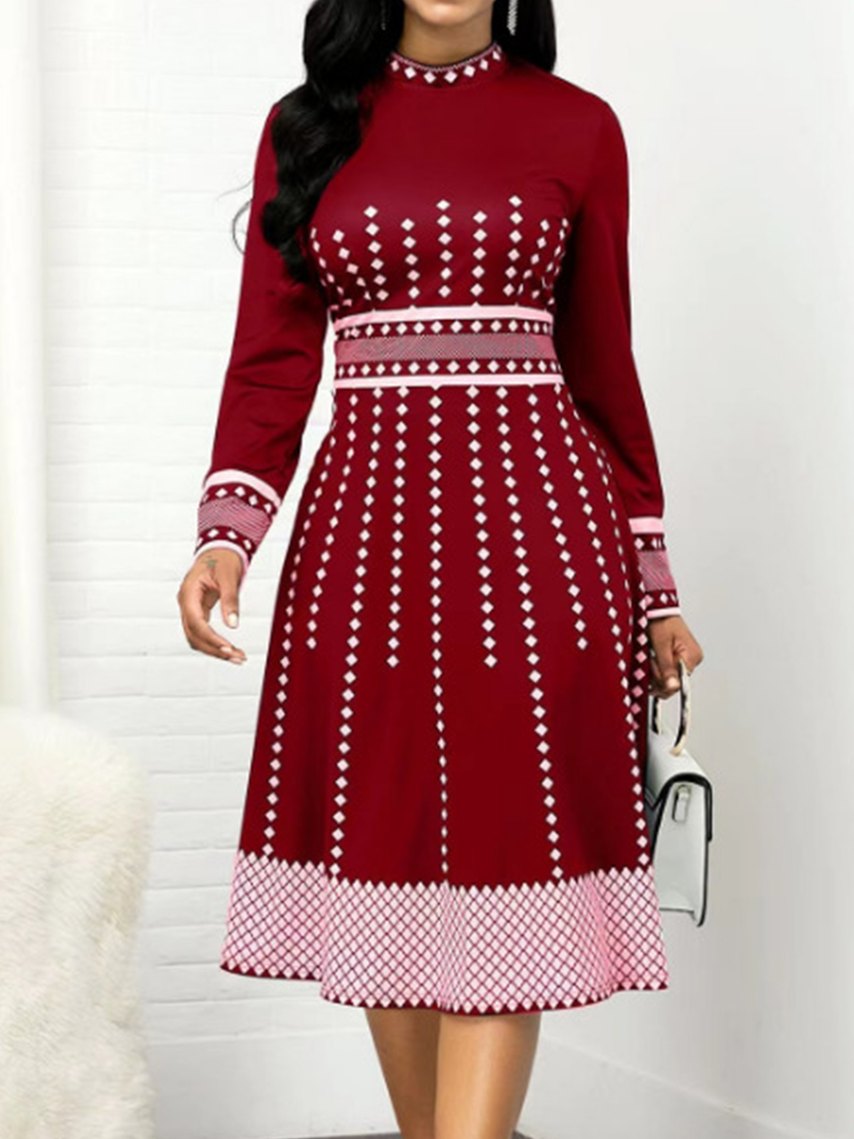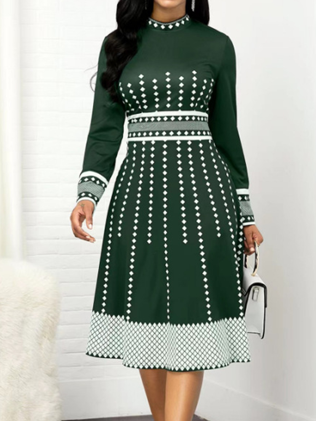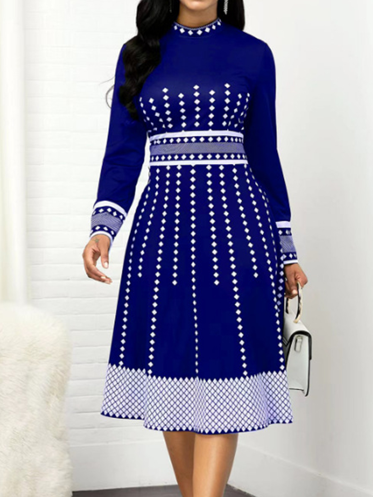 SKU: Women's Retro Print Long Sleeve Slim Dress4473533-oDYOi0 Category: