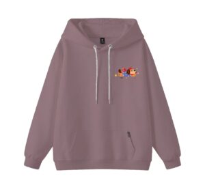 Cute Cherry Cat Graphic Lavender Puffer Jacket | Kawaii Winter Warm Zip-Up Coat