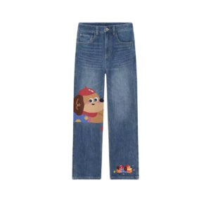 Cute Bear Graphic Wide Leg Jeans | Unique Kawaii Cartoon Straight Denim Pants