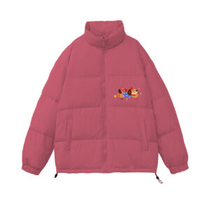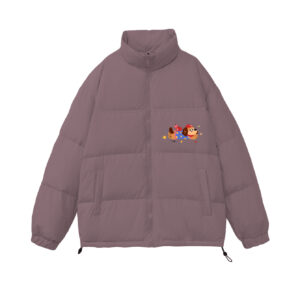 Cute Cherry Cat Graphic Lavender Puffer Jacket | Kawaii Winter Warm Zip-Up Coat