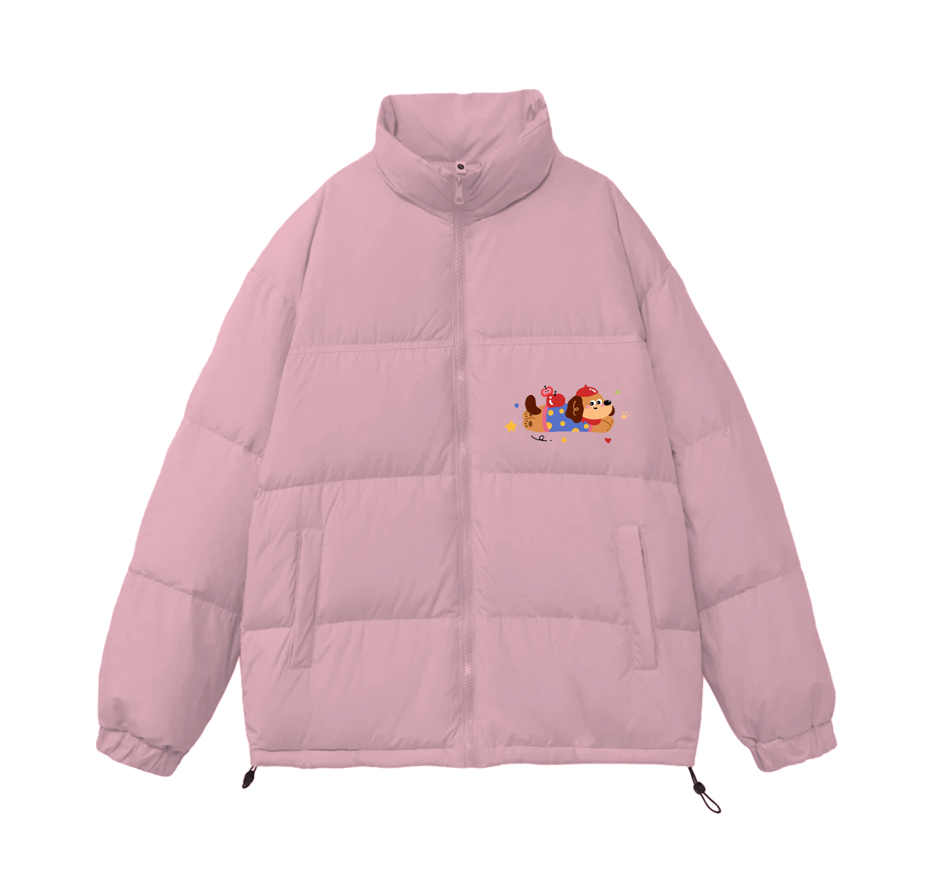 Cute Cartoon Dachshund Puppy Light Gray Stand Collar Puffer Jacket